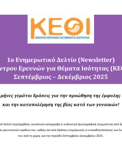Ανακοινώνεται η πρόσληψη, με σύμβαση εργασίας ιδιωτικού δικαίου ορισμένου χρόνου, ενός (1) ατόμου, ειδικότητας ΠΕ Διοικητικού (Νομικών) για την κάλυψη αναγκών του Συμβουλευτικού Κέντρου Μυτιλήνης του Κέντρου Ερευνών για Θέματα Ισότητας (ΚΕΘΙ) που λειτουργεί στο πλαίσιο υλοποίησης