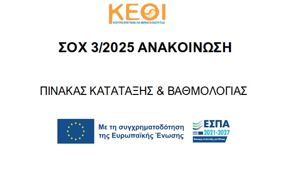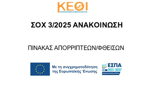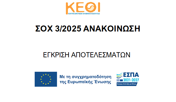 ΣΟΧ 3/2025 | ΕΓΚΡΙΣΗ ΑΠΟΤΕΛΕΣΜΑΤΩΝ, ΠΙΝΑΚΑΣ ΚΑΤΑΤΑΞΗΣ και ΠΙΝΑΚΑΣ ΑΠΟΡΡΙΠΤΕΩΝ/ΦΘΕΙΣΩΝ