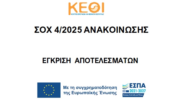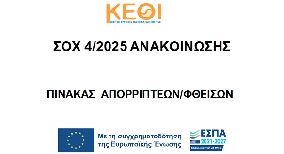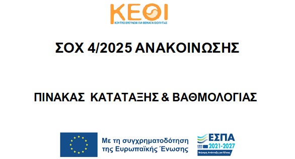 ΣΟΧ 4/2025 | ΕΓΚΡΙΣΗ ΑΠΟΤΕΛΕΣΜΑΤΩΝ, ΠΙΝΑΚΑΣ ΚΑΤΑΤΑΞΗΣ και ΠΙΝΑΚΑΣ ΑΠΟΡΡΙΠΤΕΩΝ/ΦΘΕΙΣΩΝ