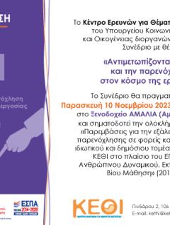 Το Κέντρο Ερευνών για Θέματα Ισότητας (ΚΕΘΙ) διοργανώνει την Παρασκευή 04.10.2024 και ώρα 11:00 πμ τελετή βράβευσης των 5 συμμετοχών στον Μαθητικό Διαγωνισμό: «Ένα σχολείο χωρίς έμφυλη βία». Η εκδήλωση θα φιλοξενηθεί στο Αμφιθέατρο του Χαροκοπείου Πανεπιστημίου (Ελ. Βενιζέλου 70